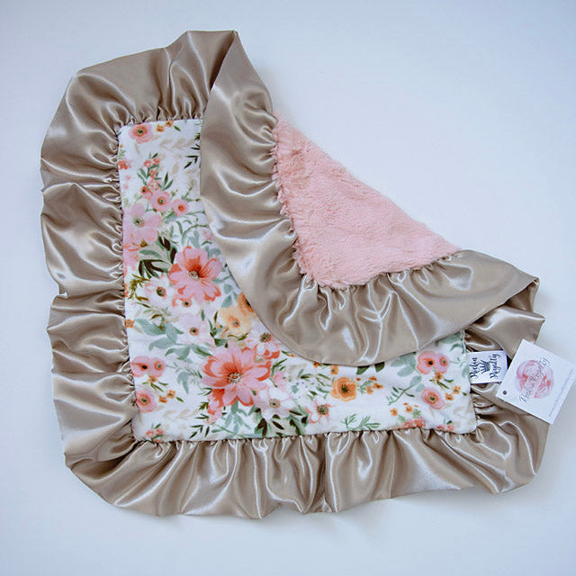 The Juliette Luxe Lovie is a little piece of luxury made just for tiny hands. Featuring our soft floral Juliette print and ultra-plush blush faux fur, this lovie is trimmed with a silky ruffle for that signature Rockin Royalty touch of elegance.