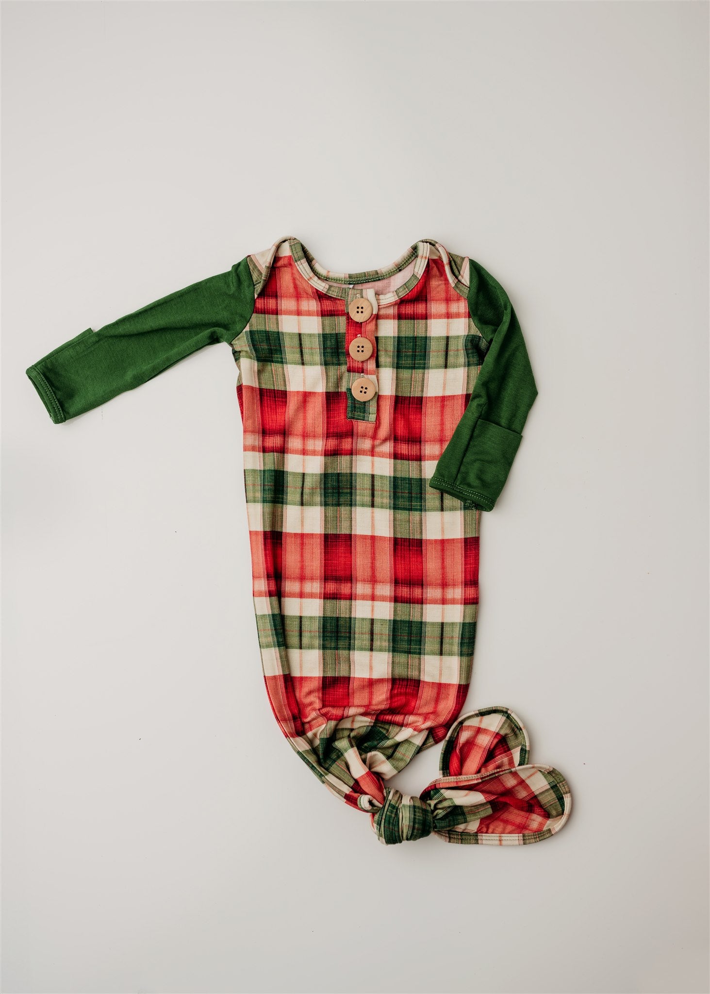 Celebrate the magic of the season with our Cozy Holiday Knot Gown with matching hat! Made from our signature buttery soft viscose from bamboo, this gown is breathable, stretchy, and gentle on delicate newborn skin perfect for cozy winter cuddles.