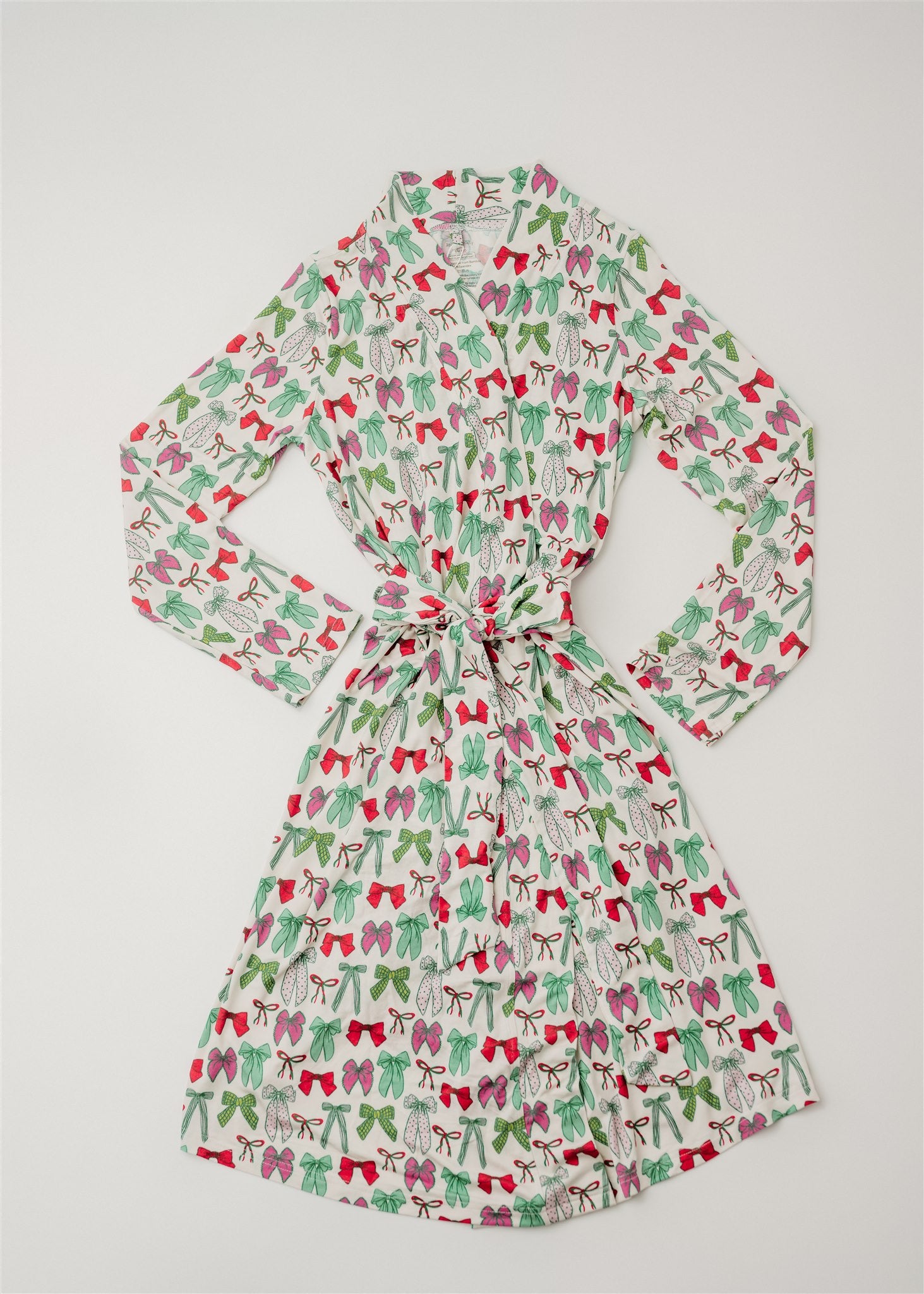 Celebrate the season in style with our Holly Jolly Bows Mommy Robe! Featuring a festive mix of red, pink, and green hand-drawn bows, this cheerful print is full of holiday spirit and cozy charm.