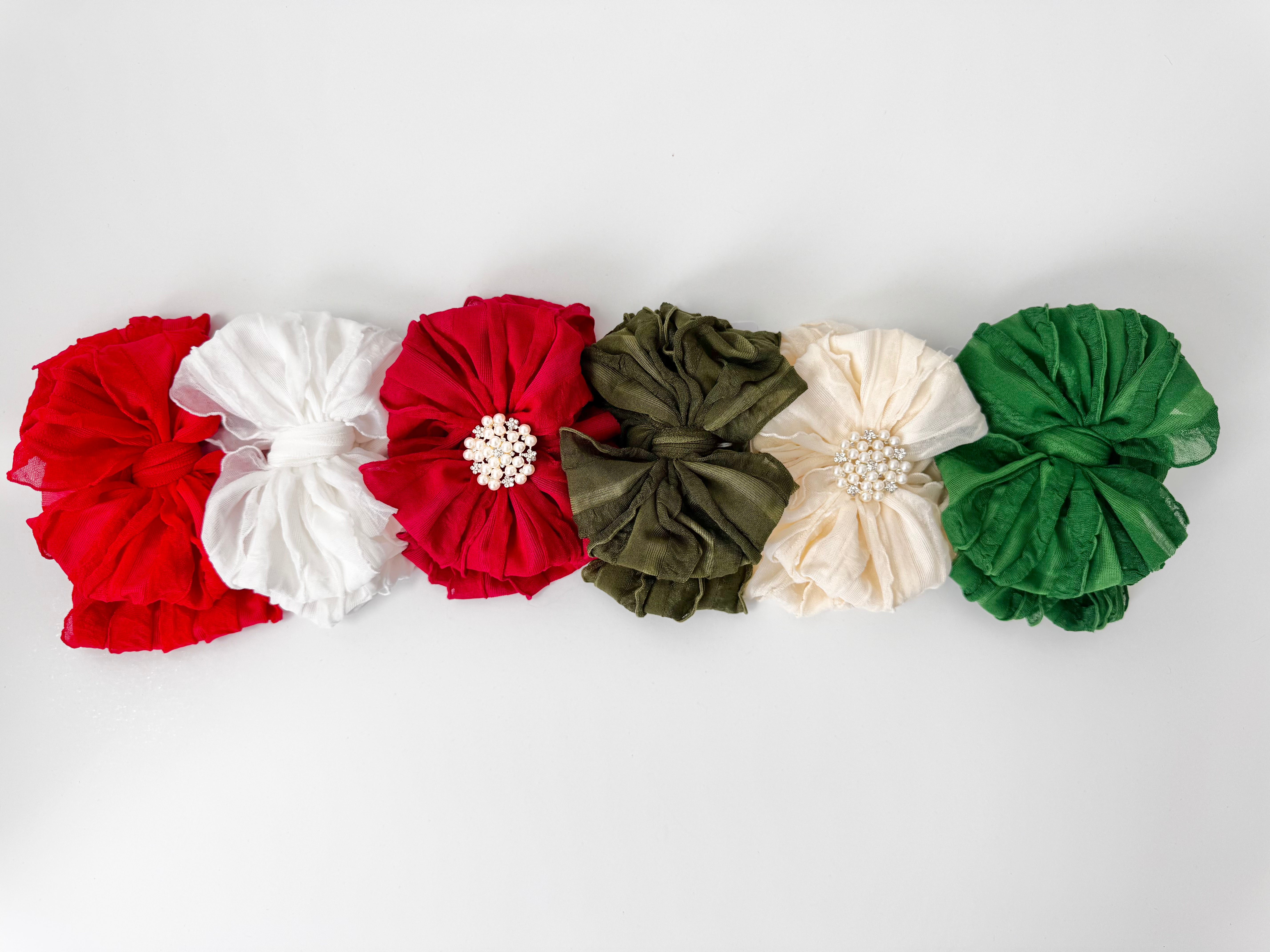 Celebrate the magic of the season with our Christmas Headband Bundle a festive collection designed to make every holiday moment picture-perfect. This curated set of 6 soft and stretchy ruffle headbands features rich, timeless hues inspired by Christmas cheer and winter elegance.