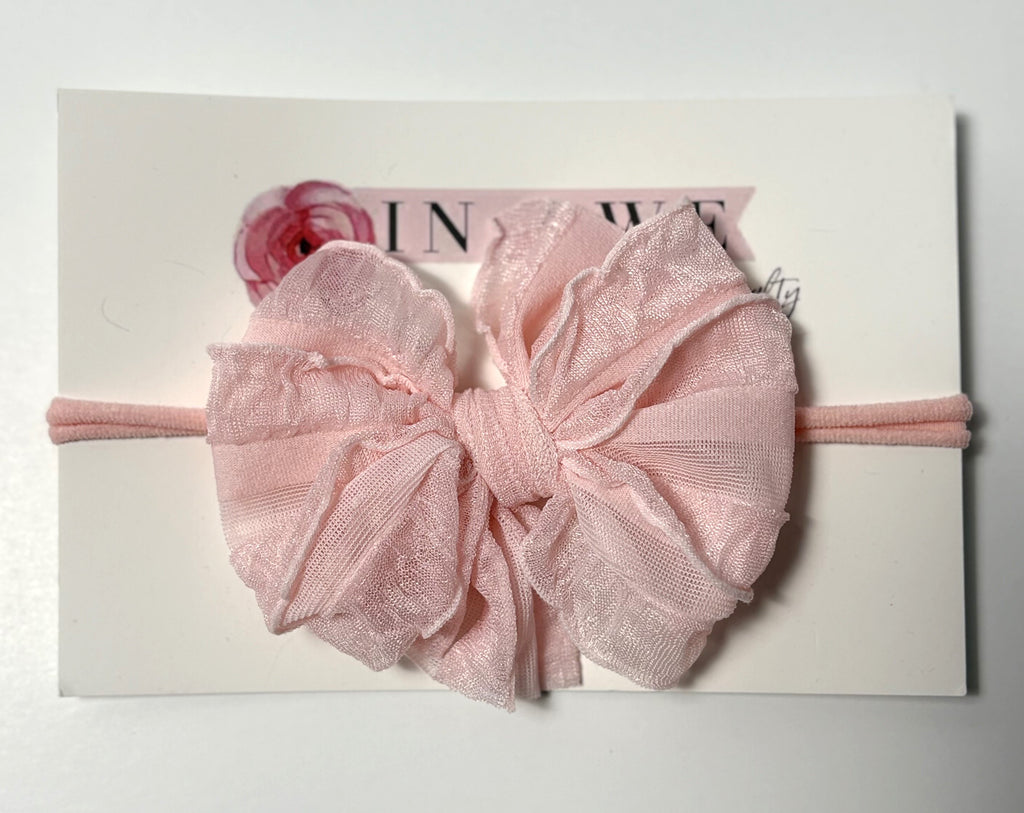 We carry a wide selection of baby bows headband with many unique colors and designs. Our headbands use a soft ruffle fabric that creates a sophisticated texture.