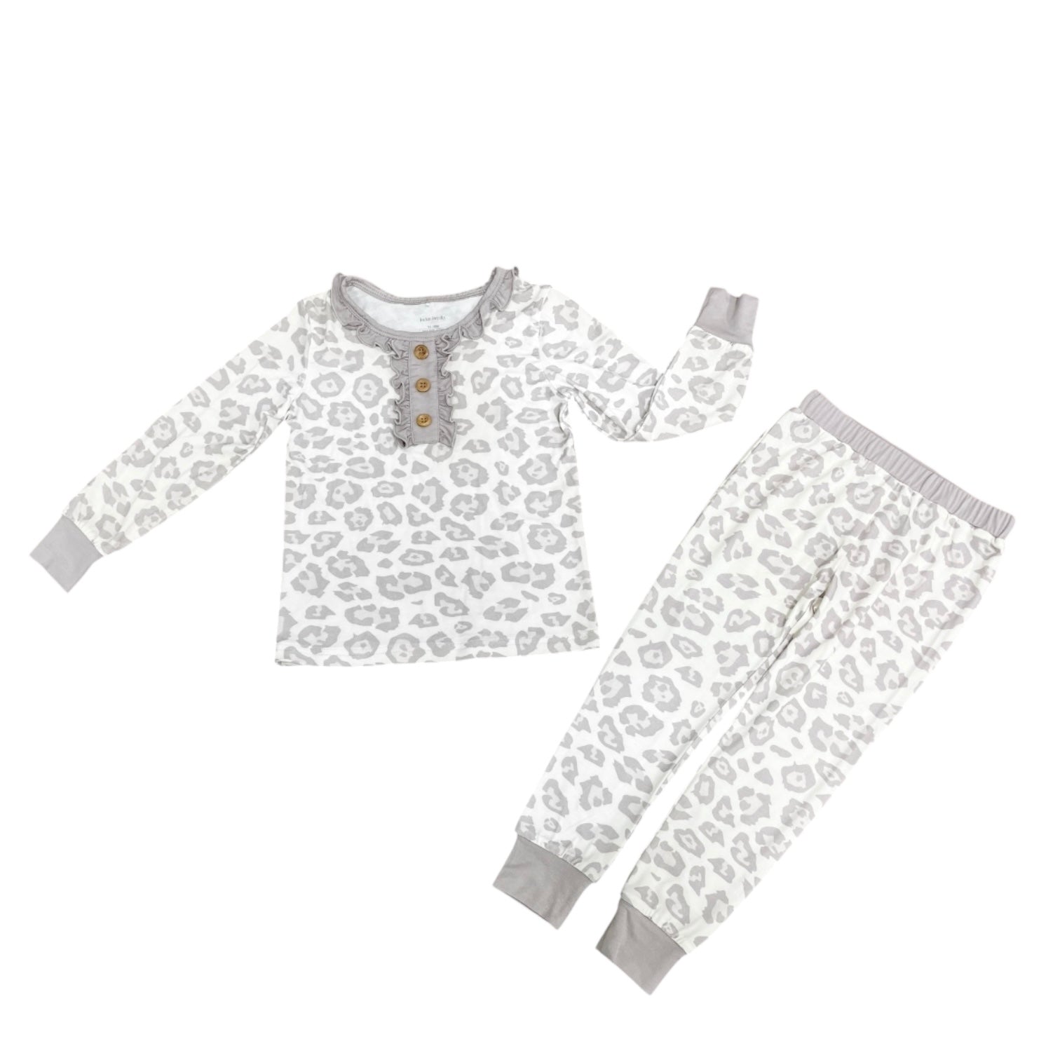 Your favorite Natural Leopard print is now in the sweetest 2-piece viscose from bamboo toddler set. Complete with ruffle details and functional front buttons for easy dressing! Made from our signature bamboo fabric, this set is luxuriously soft, breathable, and perfect for sensitive skin. The stretchy fit allows your little one to move freely from playtime to bedtime.